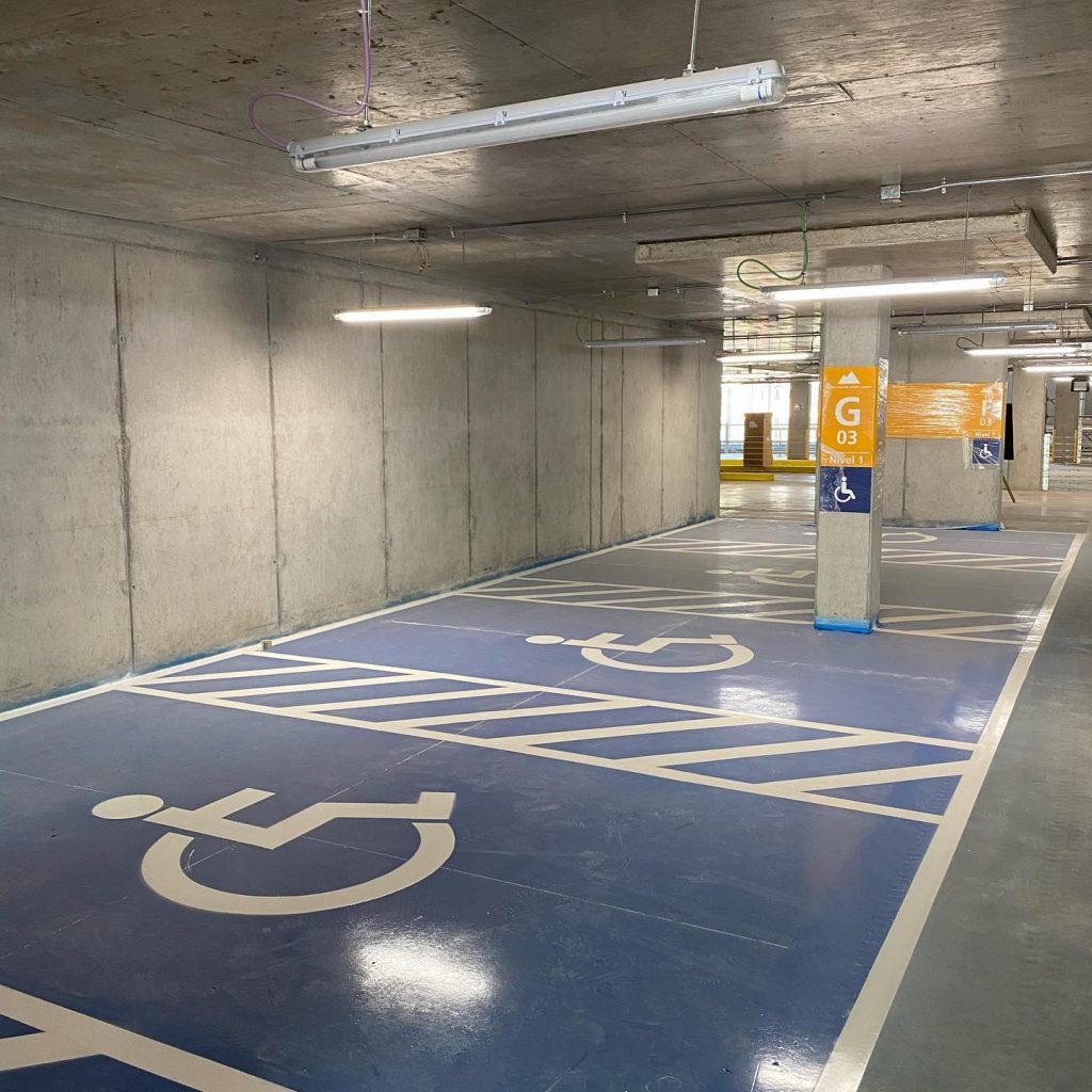 Demarcación de estacionamientos para discapacitados en el Aeropuerto de Stgo con pintura Poliuretano, excelente acabado y durabilidad #trabajeconexpertos