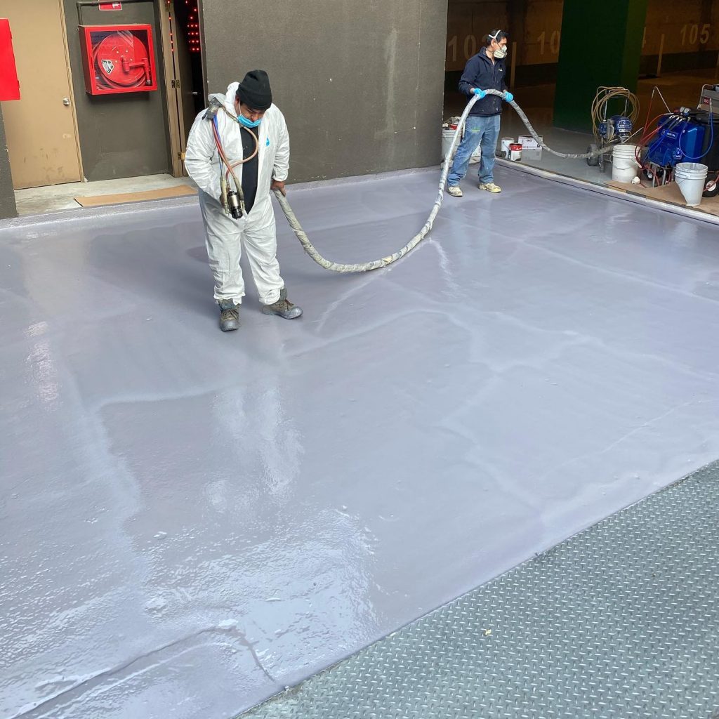 Sistema de Impermeabilización transitable con Poliurea Caliente en 3mm de espesor con equipo Graco Reactor E10HP de @apvchile
